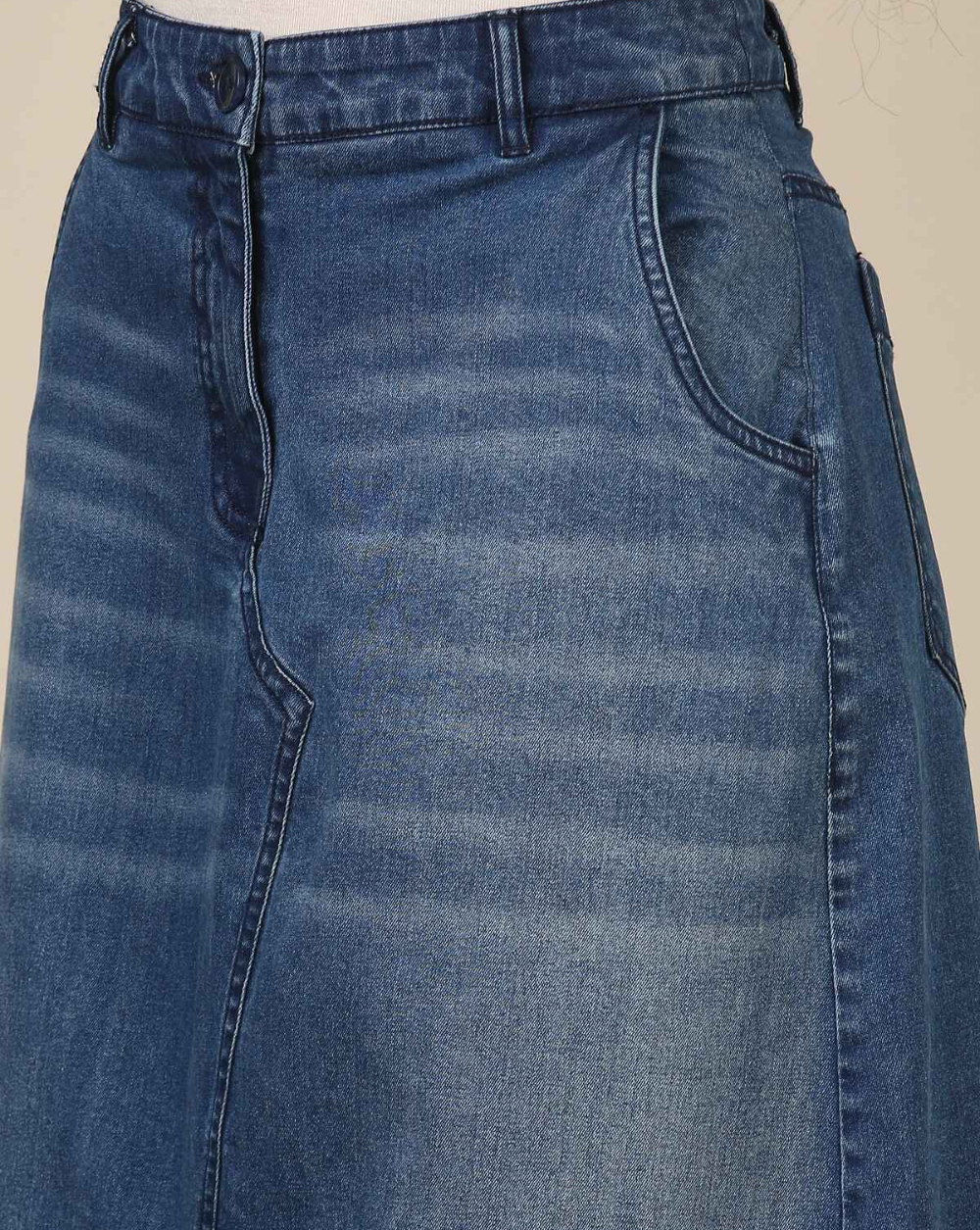 Be the first to review “Ladies 5 Pocket Stretch Denim Skirt With Slit Garment Washed”